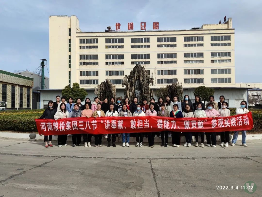 瀏覽次數(shù):9170次3月4日,為迎接即將到來的“三八”國際勞動婦女節(jié),充分調(diào)動女職工工作積極性,激發(fā)干事創(chuàng)業(yè)熱情,結(jié)合“能力作風(fēng)建設(shè)年”活動有關(guān)要求,河南糧投集團(tuán)以“講奉獻(xiàn)、敢擔(dān)當(dāng),提能力、做貢獻(xiàn)”為主題開展赴河南世通食品有限公司參觀學(xué)習(xí)實踐活動,集團(tuán)總會計師任才,集團(tuán)本部及子公司女職工代表40余人參加了活動。