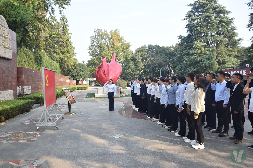 在鄂豫皖蘇區(qū)烈士陵園,黨員們集體向革命烈士紀念碑敬獻花籃,一幅幅珍貴的歷史照片,一尊尊栩栩如生的雕塑,一件件感人肺腑的故事,把同志們的思緒帶回到那戰(zhàn)火紛飛、艱苦卓絕的崢嶸歲月,讓大家身臨其境感受到鄂豫皖蘇區(qū)“28年紅旗不倒”紅色精神躍動和傳承。隨后,在英烈廣場英雄紀念墻前,全體黨員集體重溫入黨誓詞。